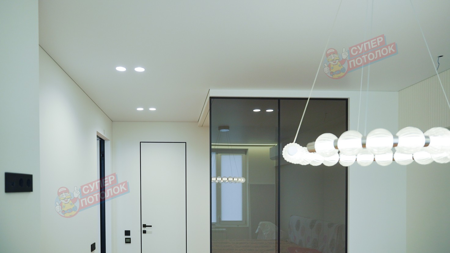 Компания «Супер Потолок» предлагает широкий выбор пленочных полотен для создания матовых натяжных потолков на кухне, в гостиной, в спальне или любой другой комнате. Для таких покрытий действительно нет никаких ограничений – они универсальны и подходят для помещений любого назначения и свойства. Их можно монтировать в жилых комнатах и местах повышенной влажности, в том числе ванных и душевых, в уютных детских и огромных общественных пространствах, в квартирах, домах и на дачах. Пленочные покрытия не боятся влаги и холодов, а внешний вид сохраняется на долгие годы.